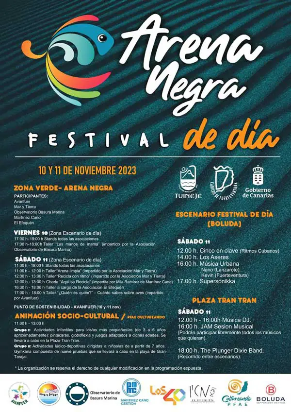 Am Samstag, den 11.11.2023 ist dann auch tagsüber einiges los in Gran Tarajal. Im Rahmen des Tagesfestivals (Festival de día) gibt es am Tagesbereich des Festivals jede Menge Aktivitäten, Workshops und auch Live Musik: